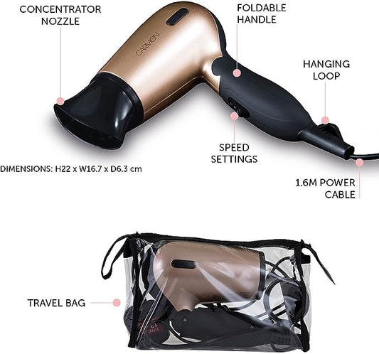 Travel Hair Dryer with Concentrator Nozzle, Travel Bag, 1200 W, Black and Rose GoldRegular price ยฃ17.40 GBPRegular priceUnit price / perยฃ18.90 GBPSale price ยฃ17.40 GBPSold out